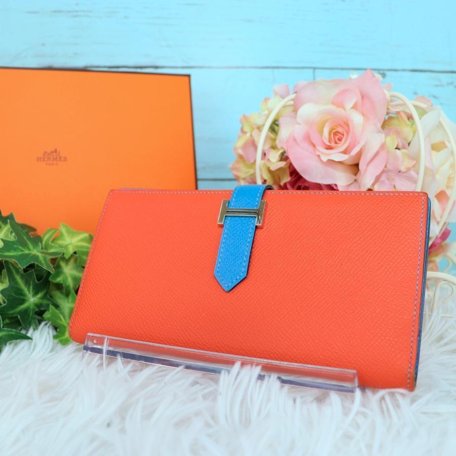 HERMESべアンスフレ ライトブルー×タンジェリンオレンジ バイカラー 箱付き
