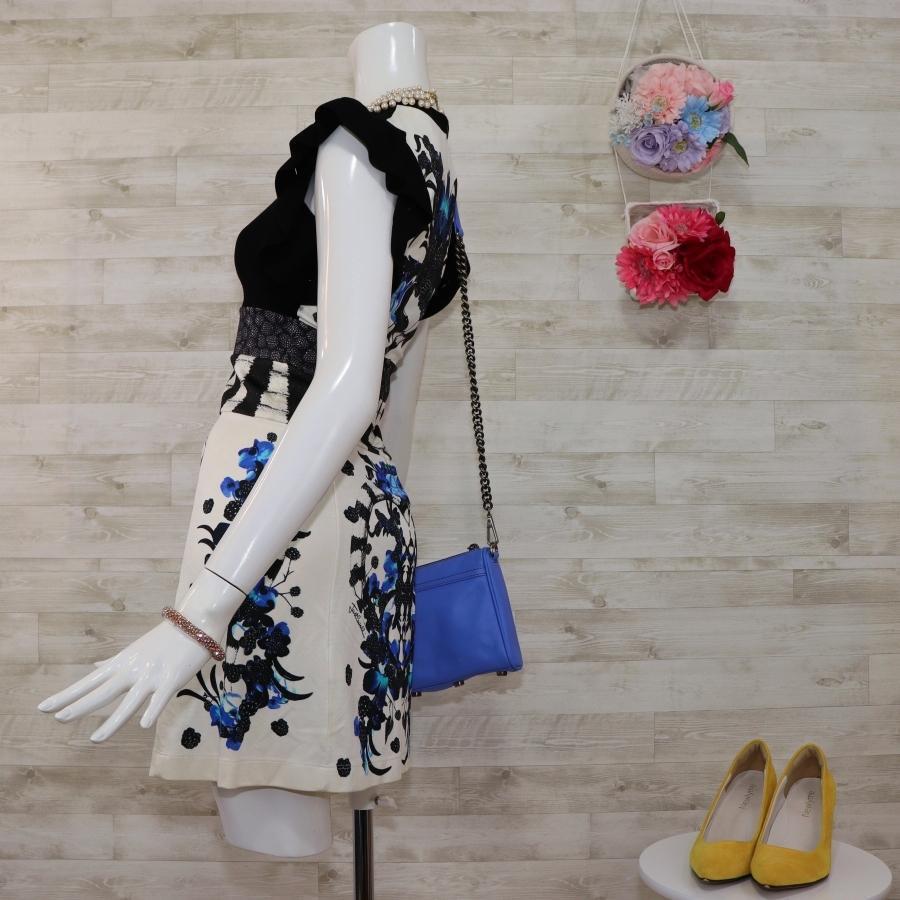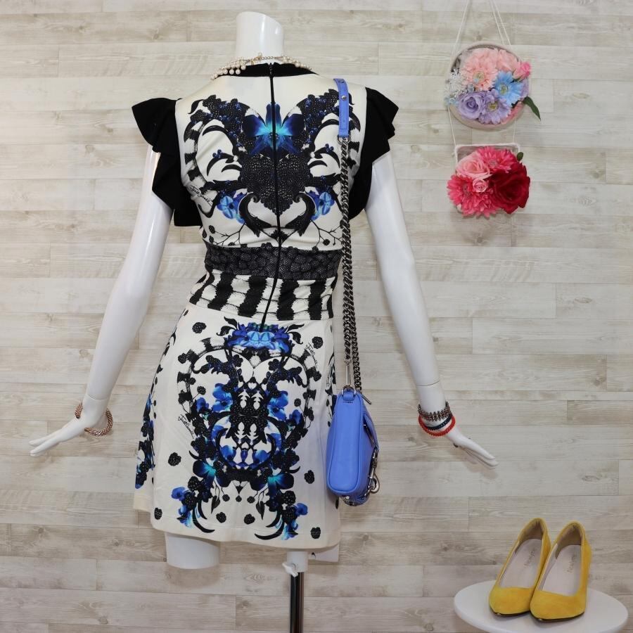 ジャストカヴァリ ウエスト切替ワンピース フレア袖 M 花柄 ひざ丈ワンピース