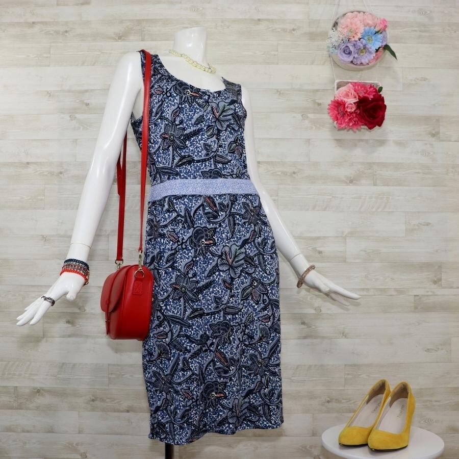トリーバーチ シルク ノースリーブワンピース S 花柄総柄 ブルー系 ほぼ未使用