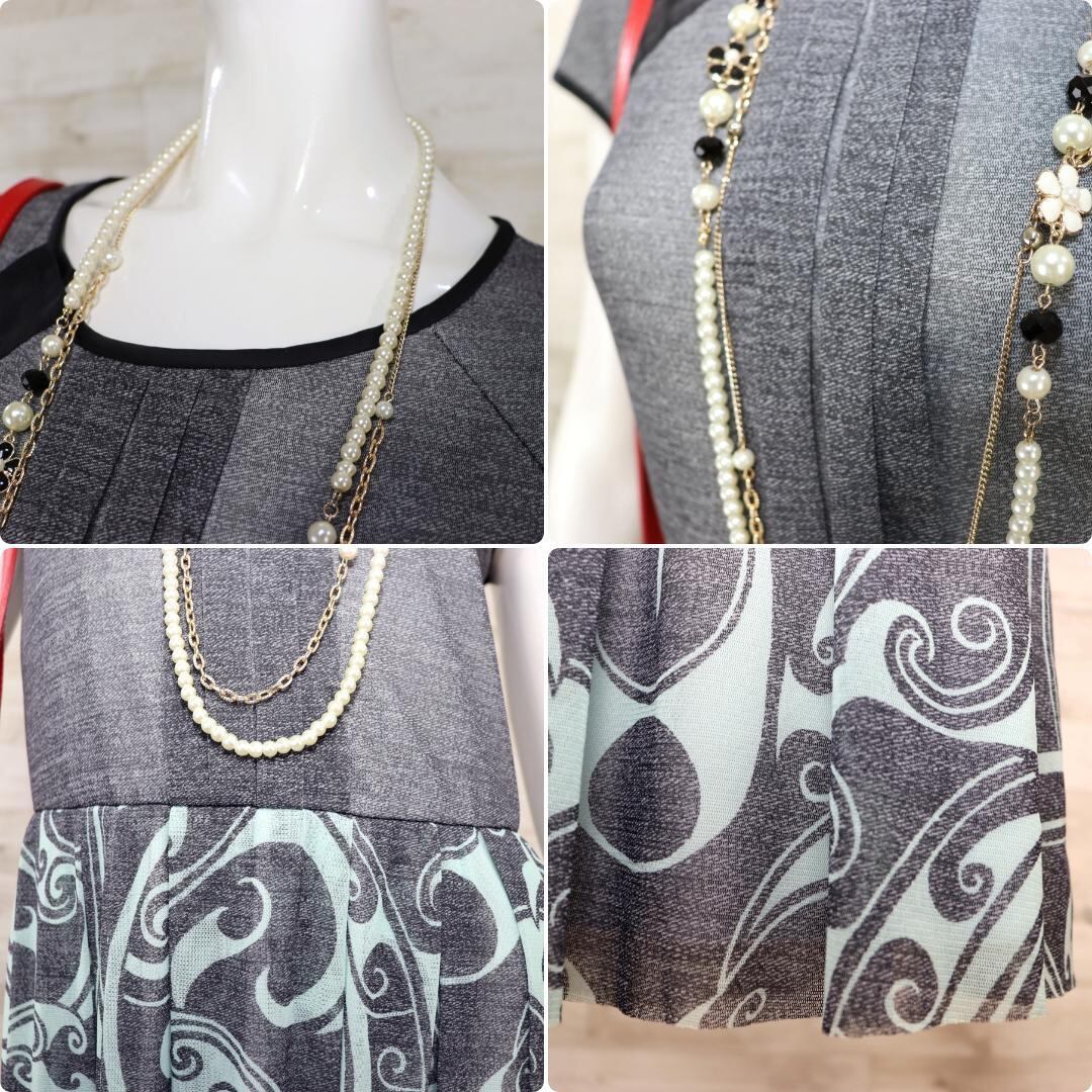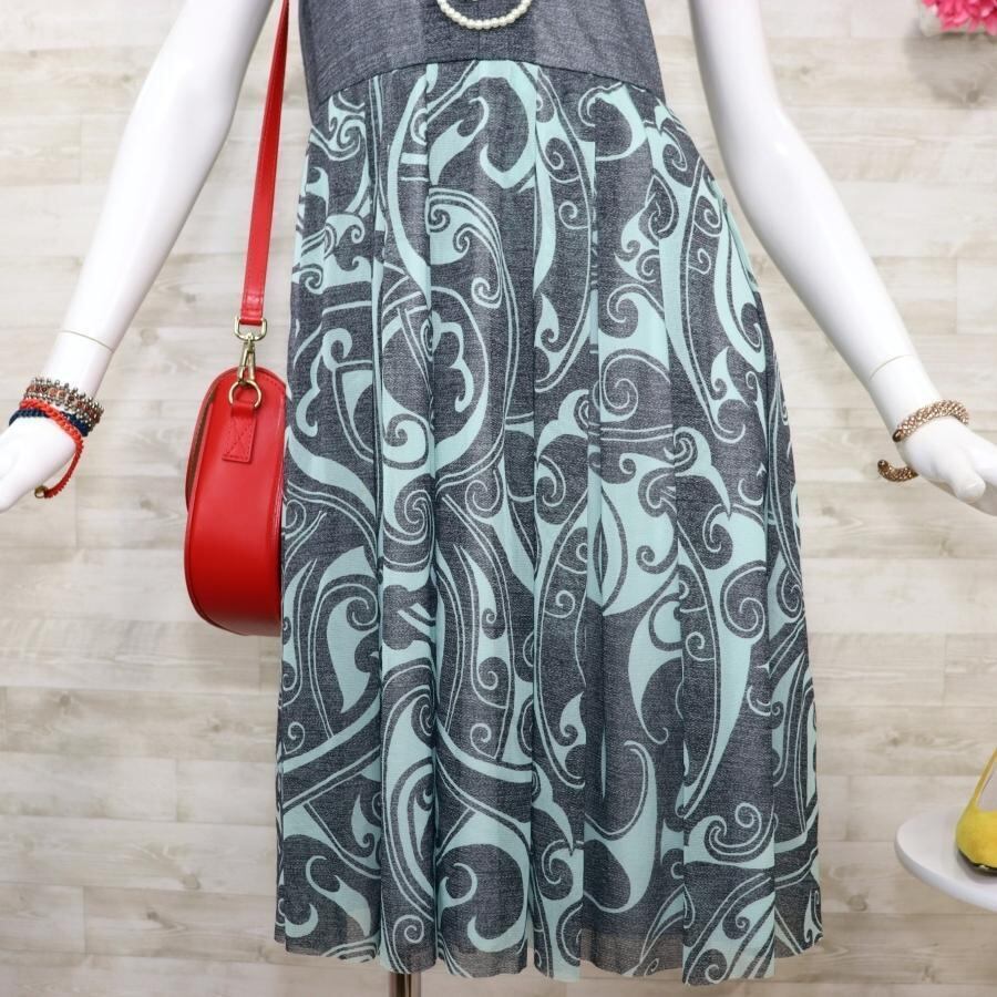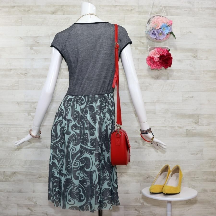 ヴィヴィアンタム ウエスト切替ワンピース S グレー×緑 シアー素材 ほぼ未使用
