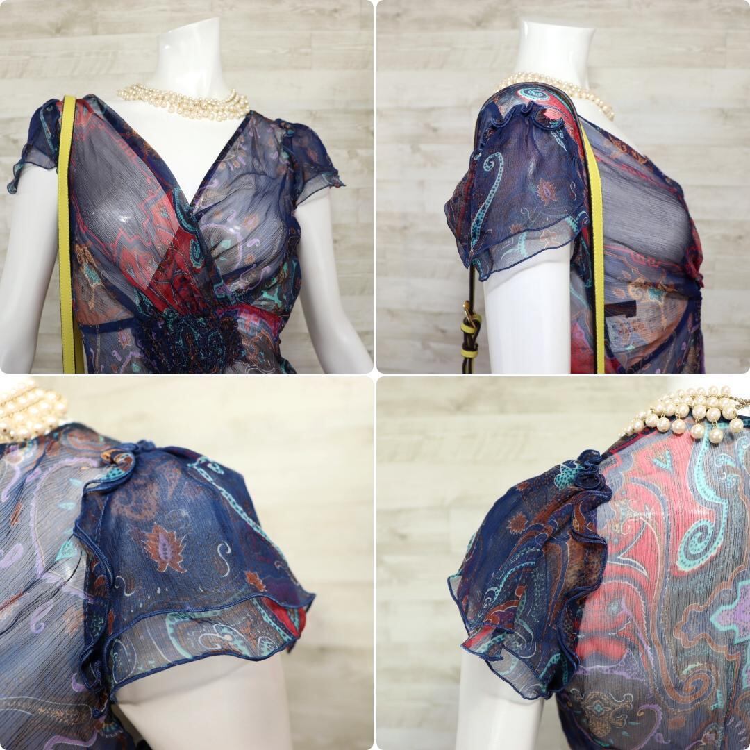 ANAYI アナイ シアーシルクワンピース M 紺色 ペイズリー柄 ほぼ未使用