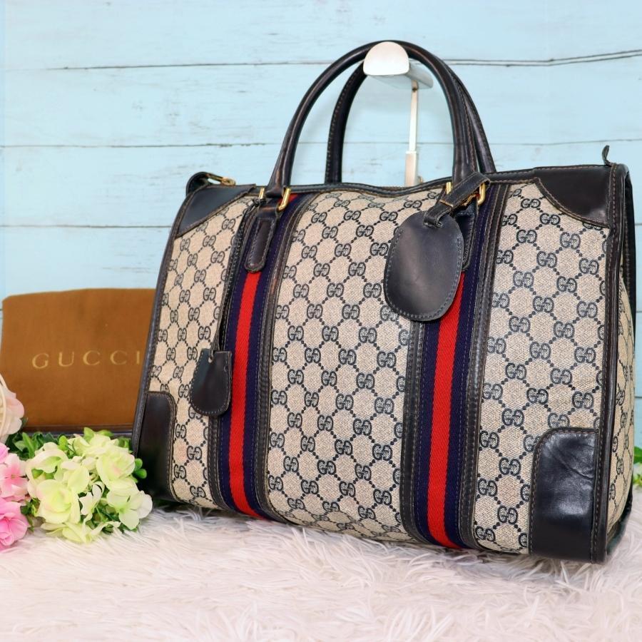 オールドグッチ 鍵付きボストンバッグ シェリーライン GGスプリーム 大容量