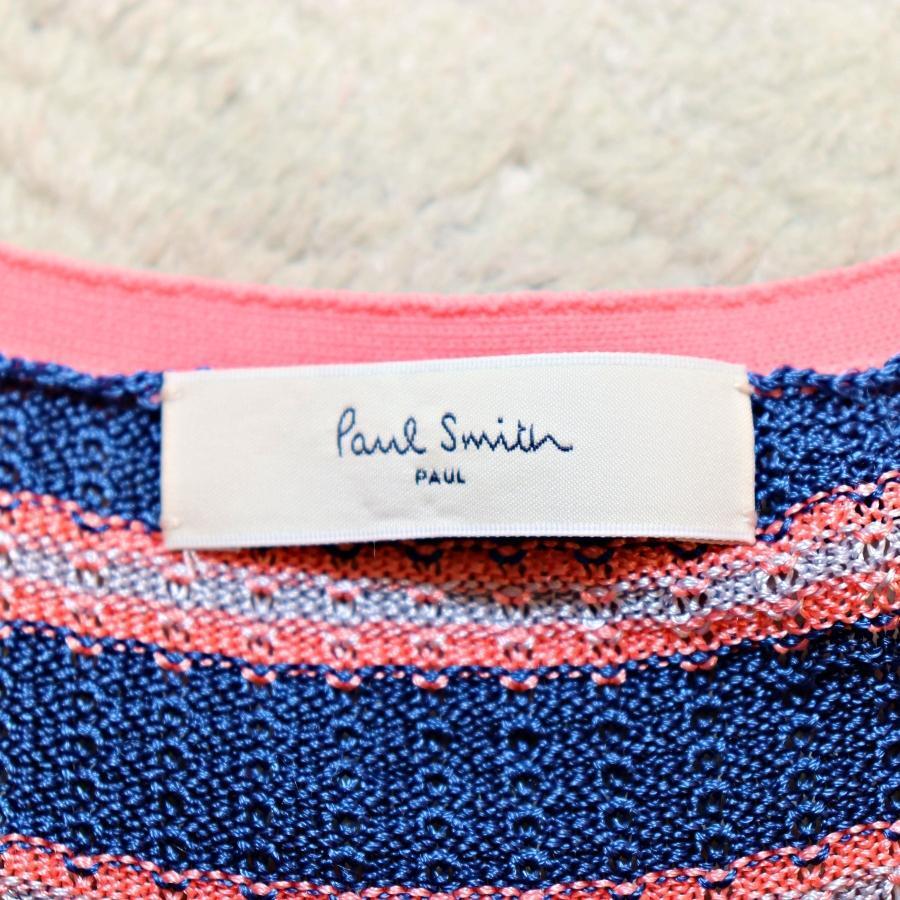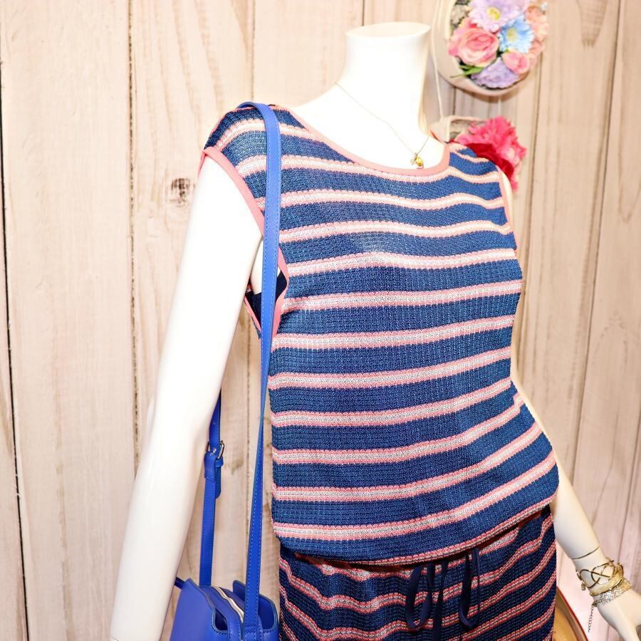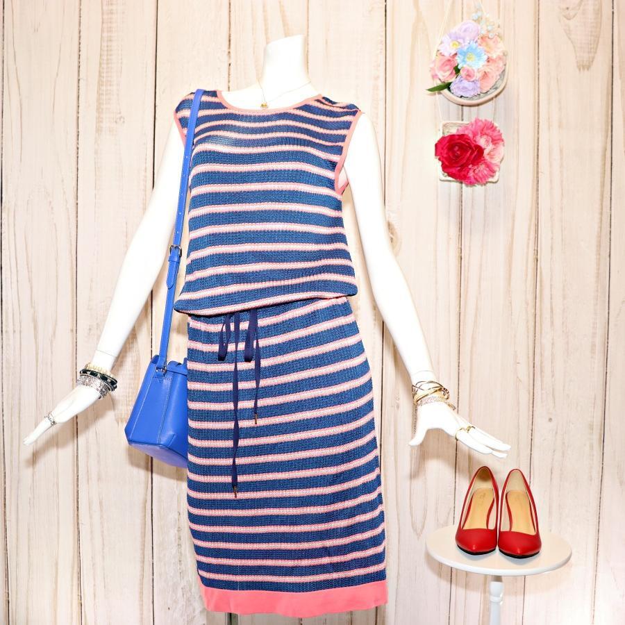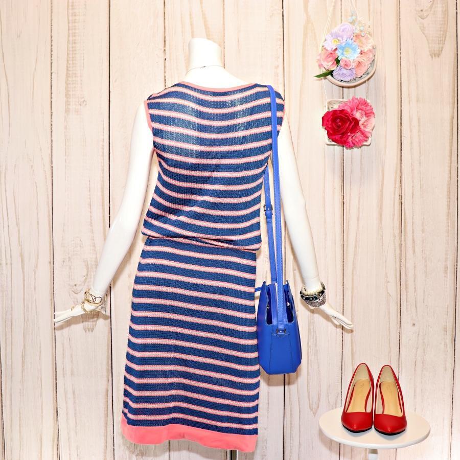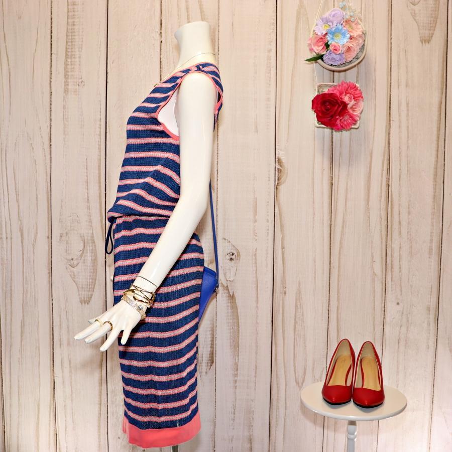 ポールスミス ボーダーワンピース M ウエストドローコード ノースリーブ 紺色