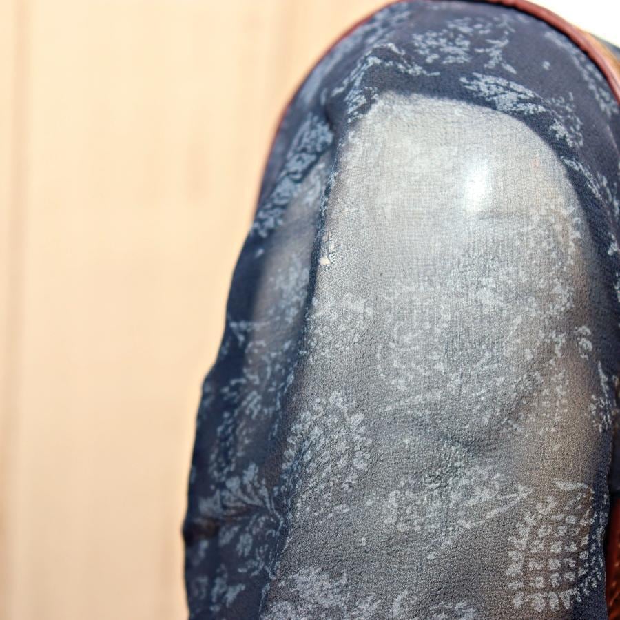 あまり目立ちませんが、右袖の素材の一部が薄くなっている箇所、脇の辺りがほつれている箇所があります。