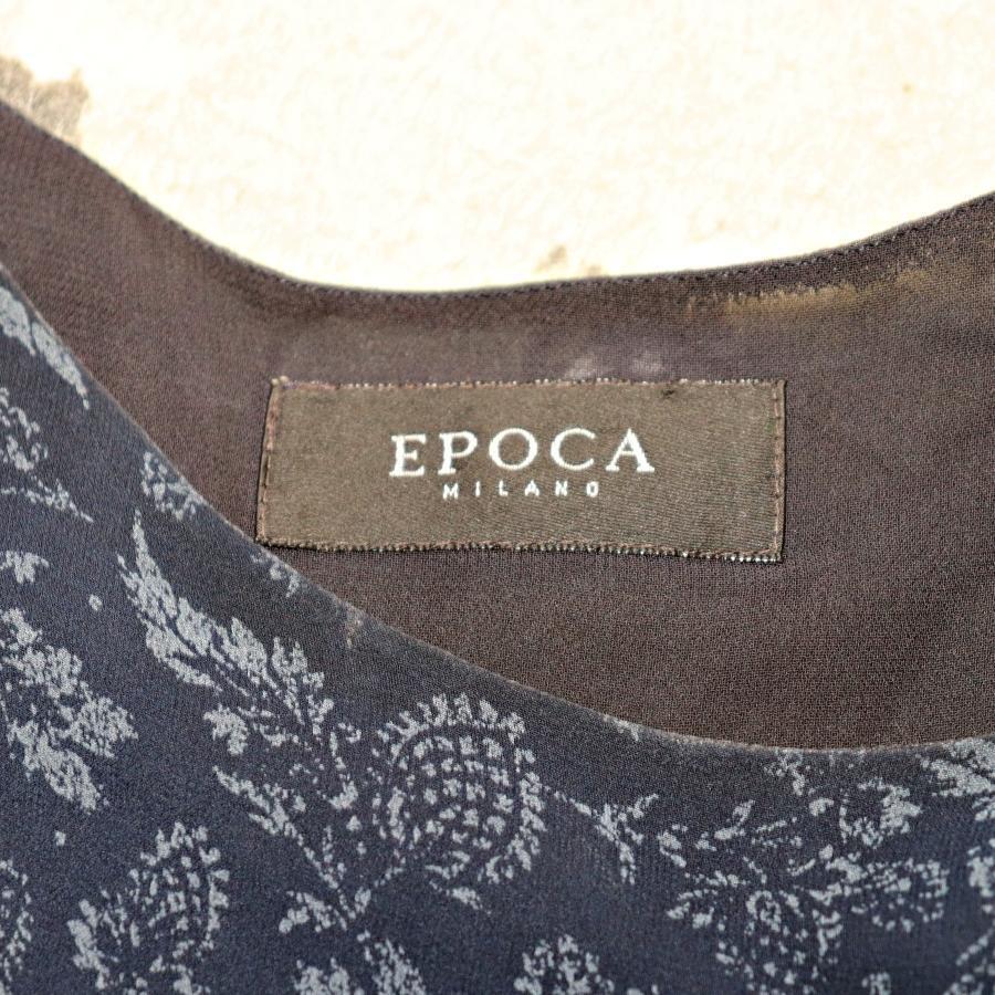 エポカ シルクワンピース S 花柄 シアー素材 ウエストドローコード 濃ネイビー