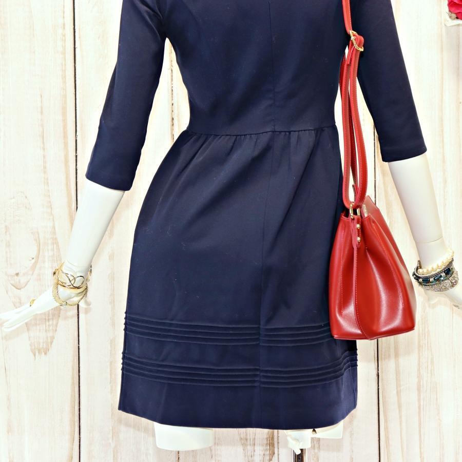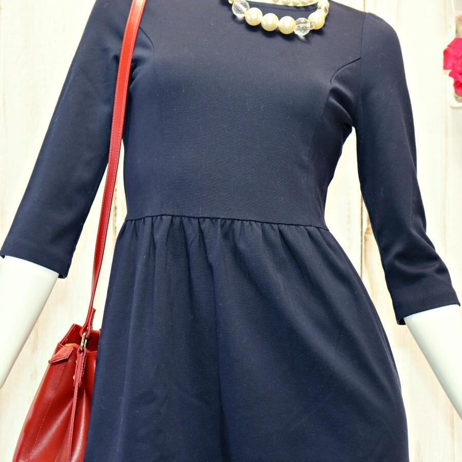 ANAYI フレアワンピース M 7分袖 ネイビー 裾パイピング ウエストタック