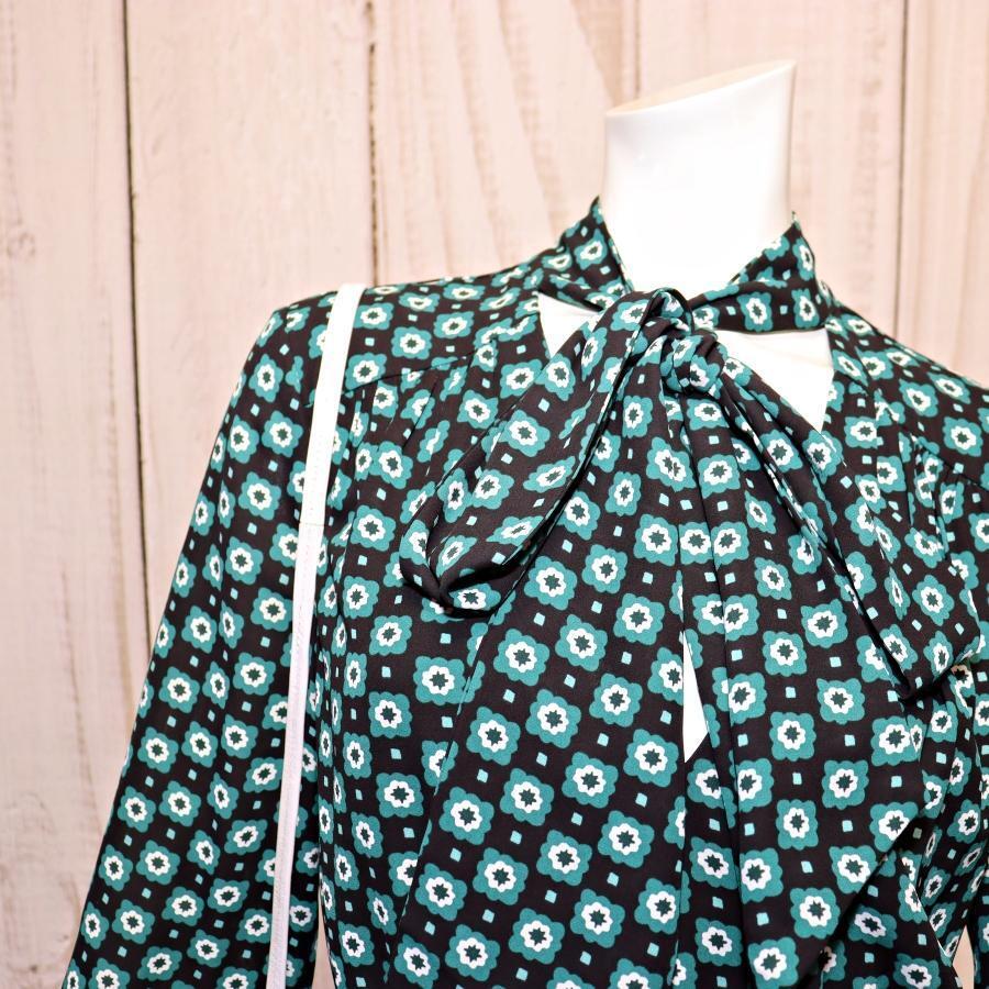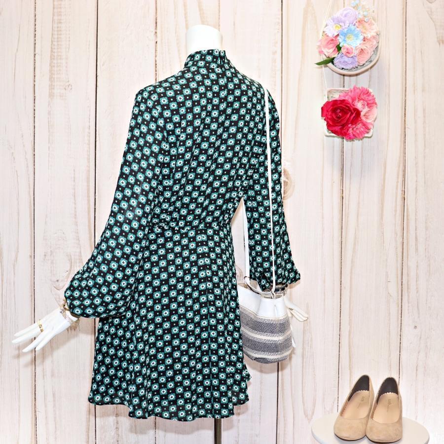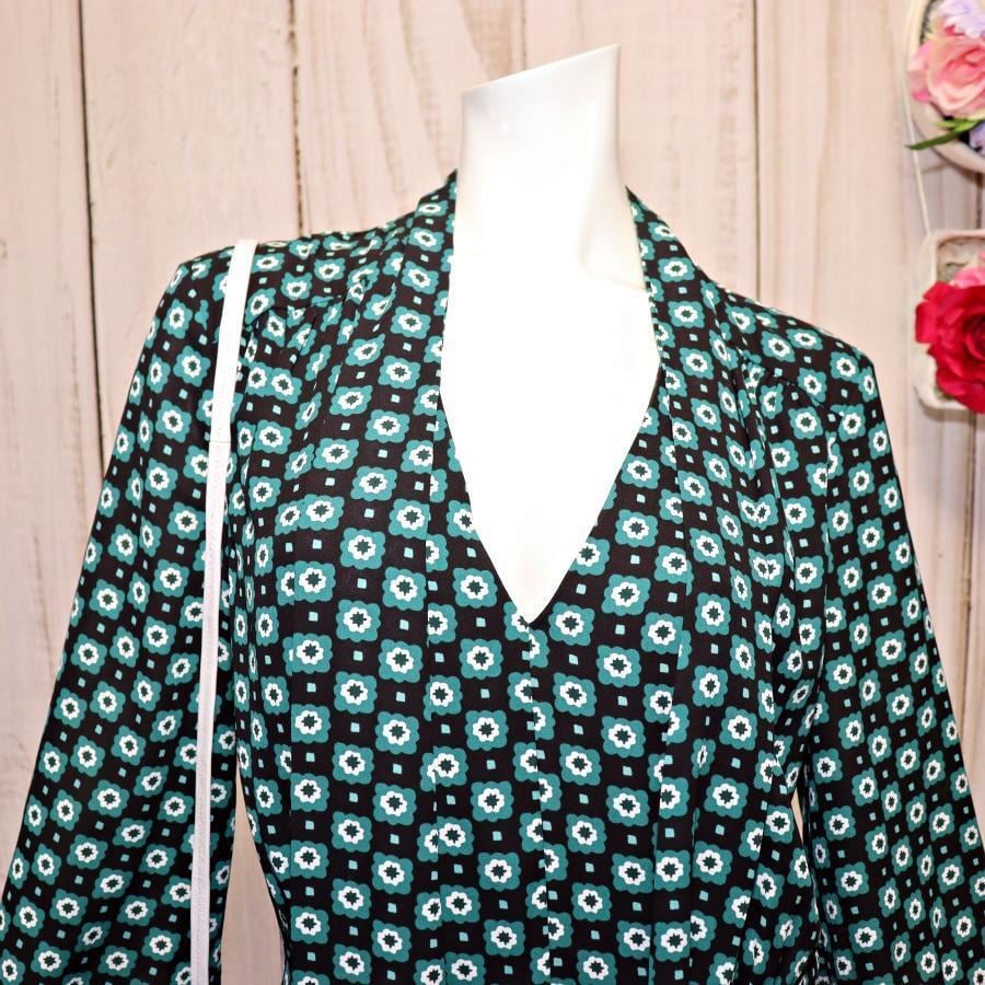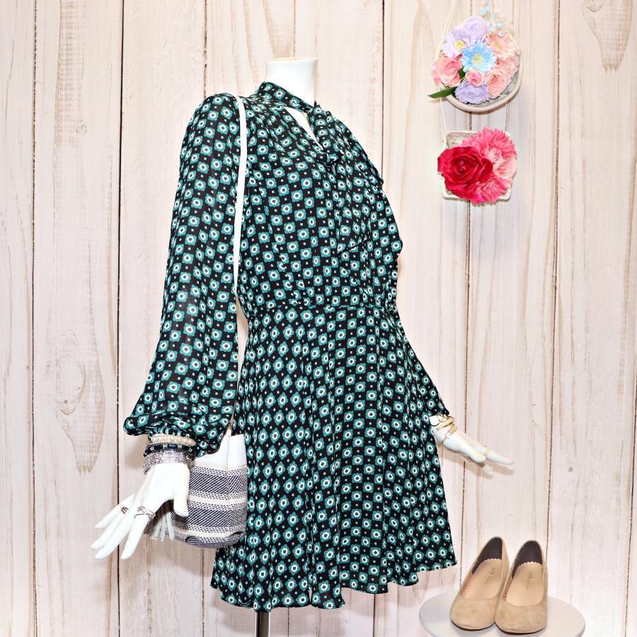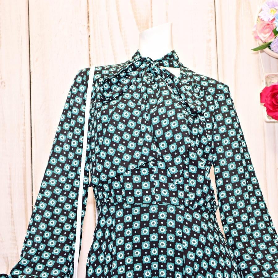 TED BAKER ネックリボンワンピース S グリーン 総柄 ほぼ未使用