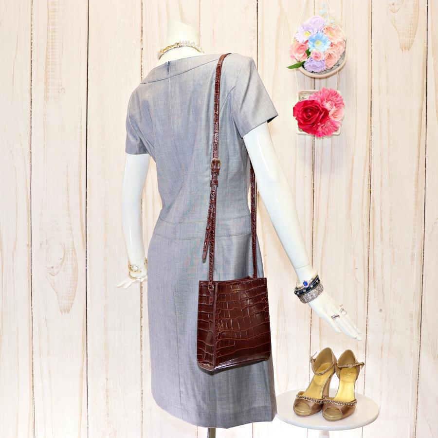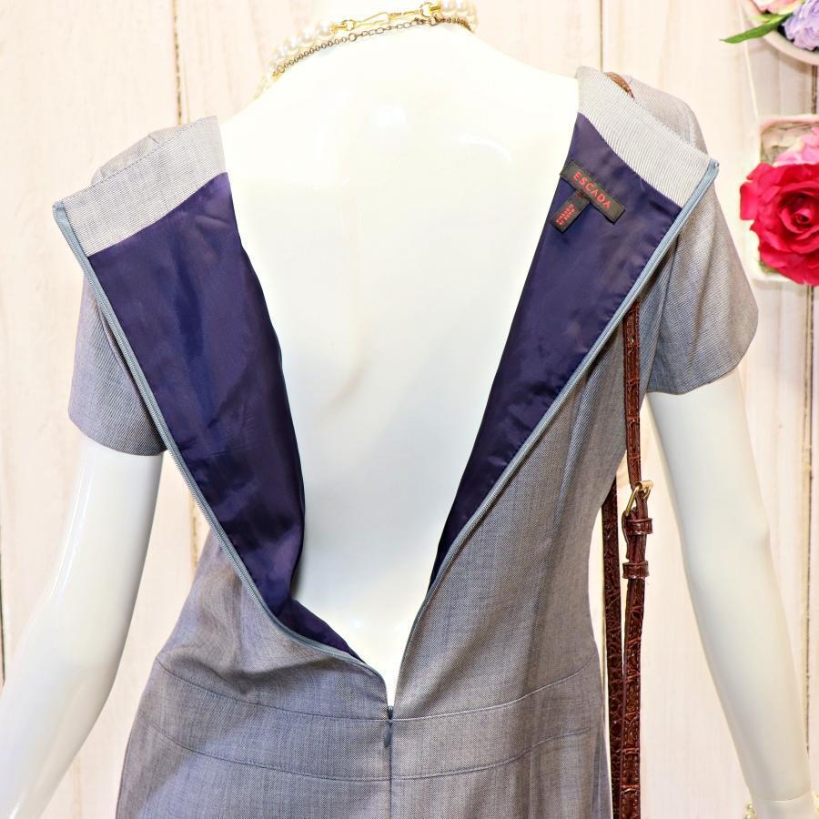 エスカーダ 半袖ワンピース S ブルーグレー シルク混紡 リボンネック