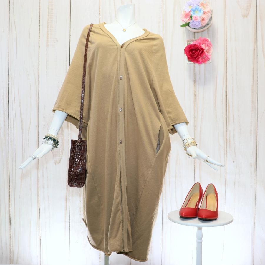 特徴:大きいサイズ、オーバーシルエット、清楚系ワンピース、コクーンワンピース、ロングワンピース、体型カバー