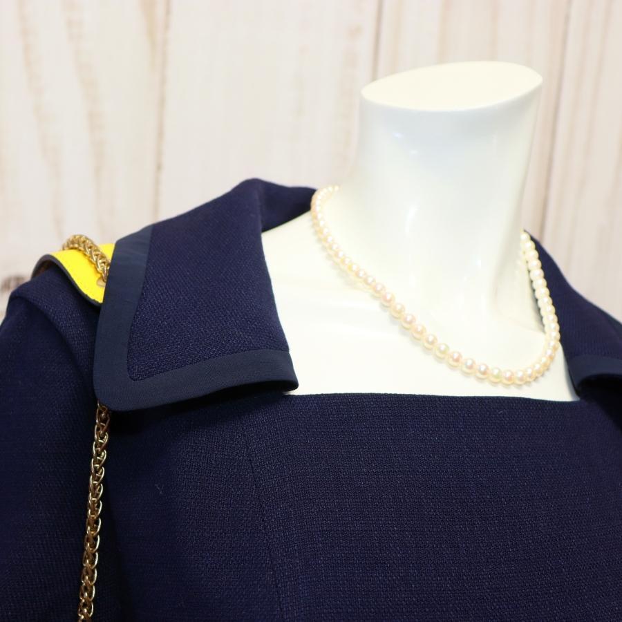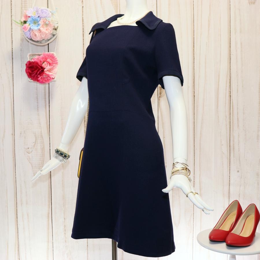 M'SGRACY スクエアネックカラードワンピース M 紺 パイピング