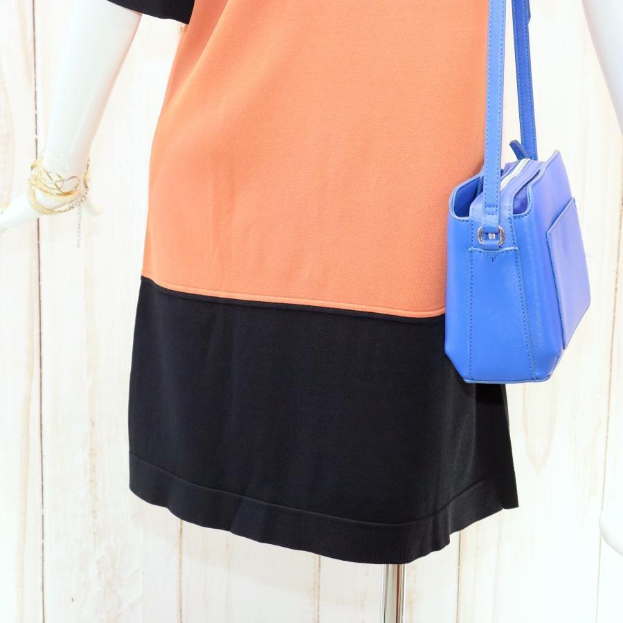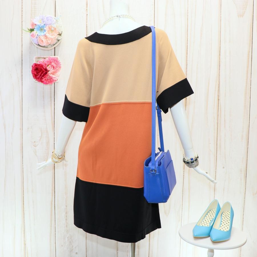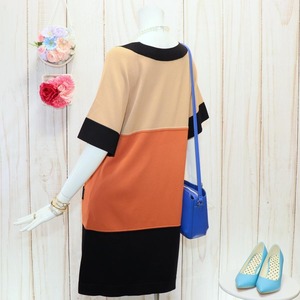 特徴:大きいサイズ、派手ワンピース、清楚系ワンピース、3色バイカラー、体型カバー、ハイゲージニットワンピ、ラグラン袖