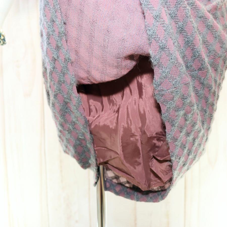 シビラ ニットワンピース L チェック柄 パープル 七分袖 伸縮素材