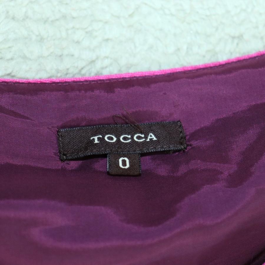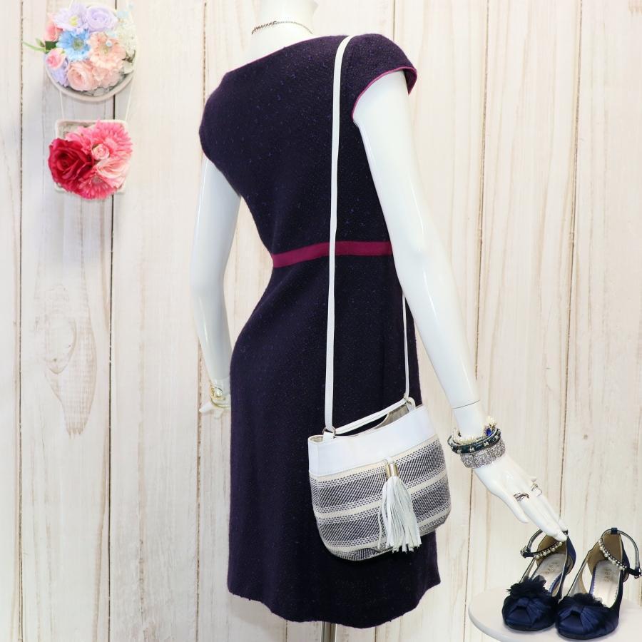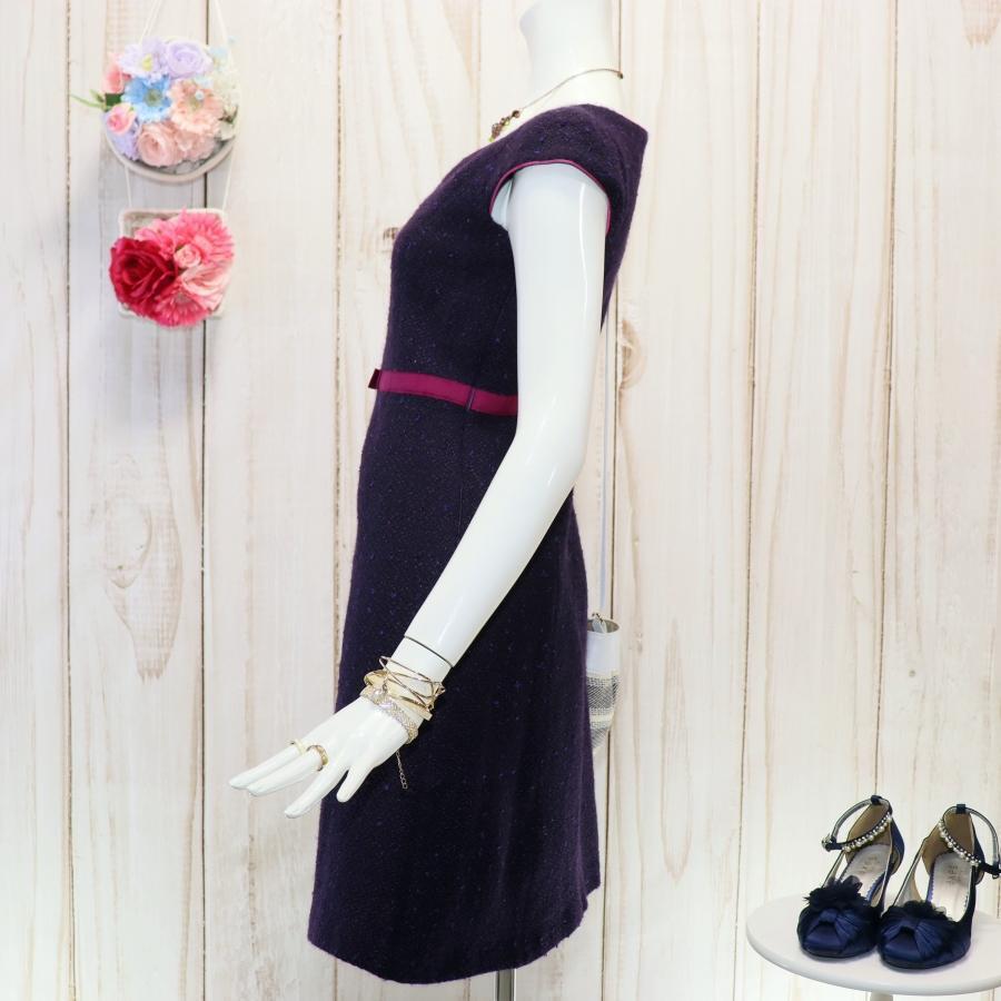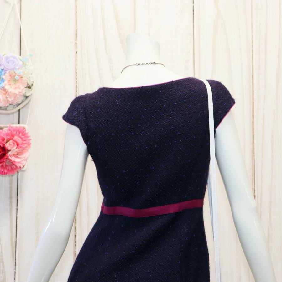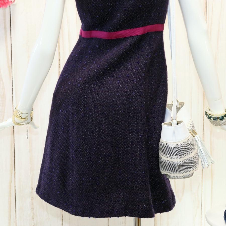 トッカ ツイードワンピース S パープル バイカラー ウエストリボン