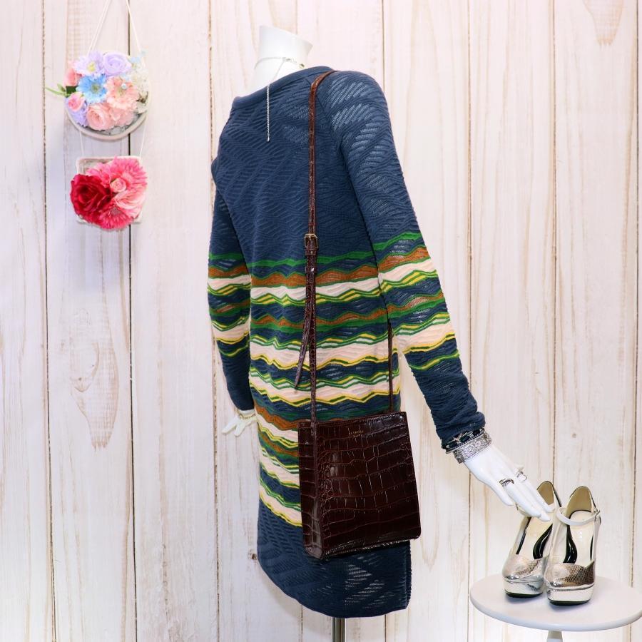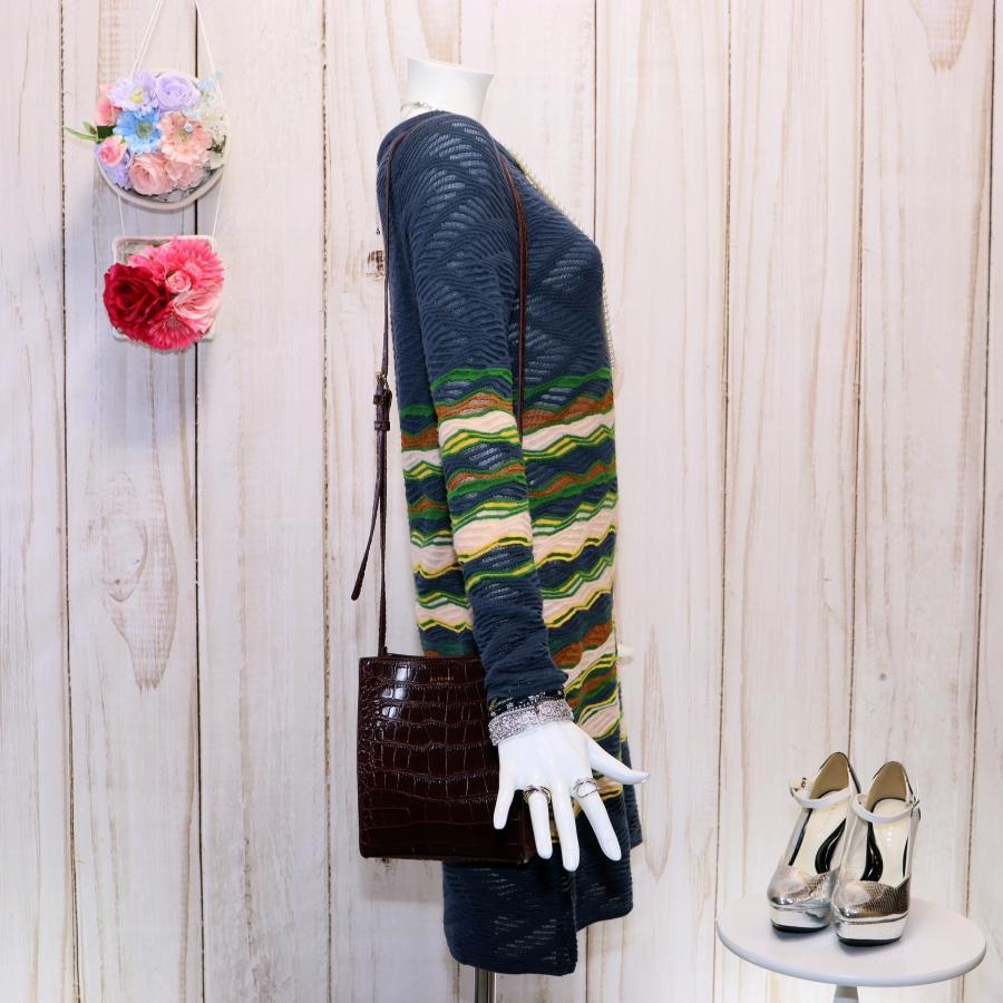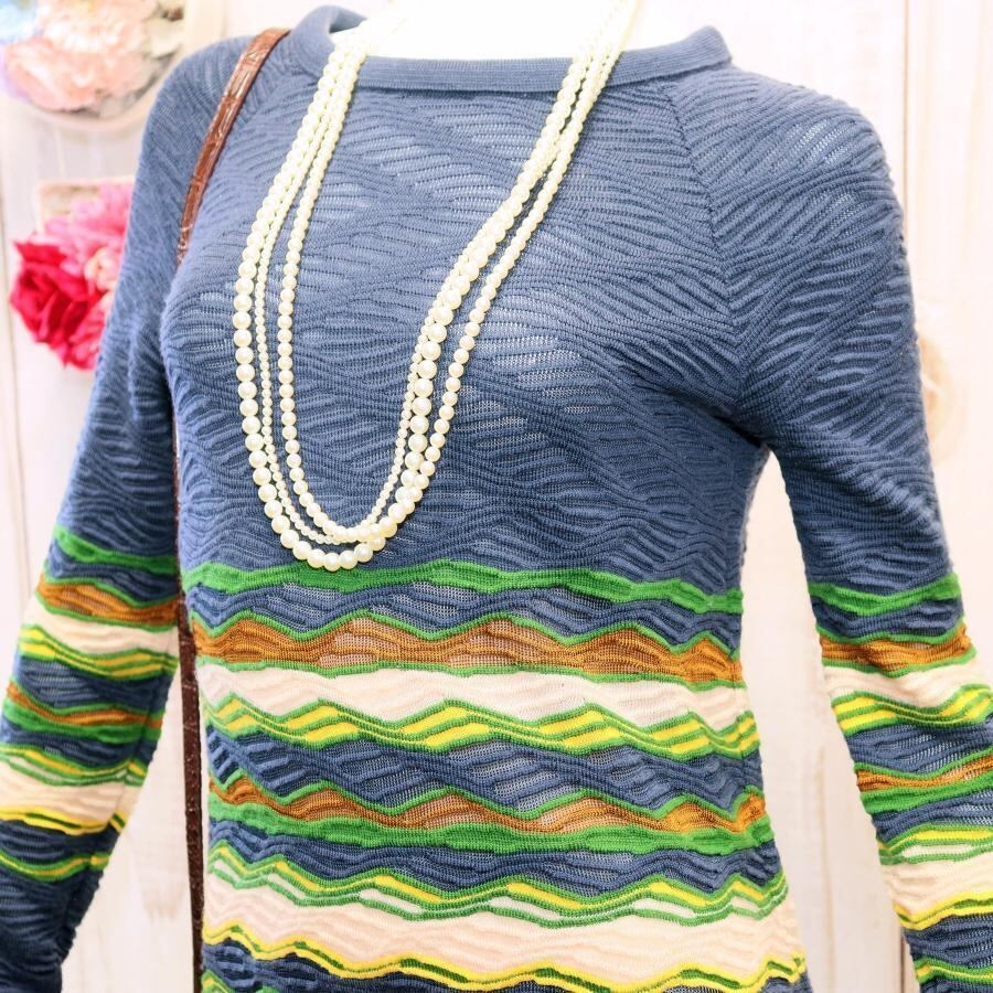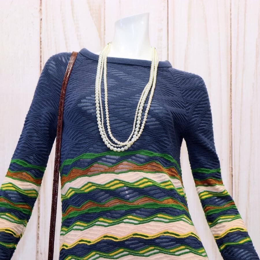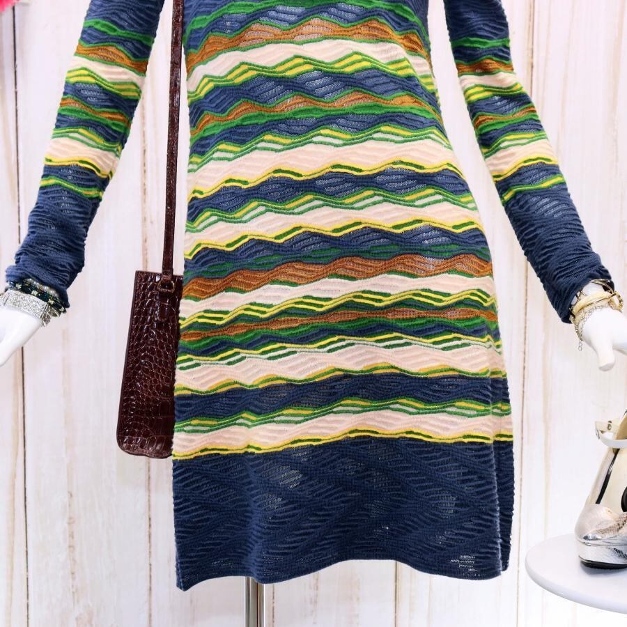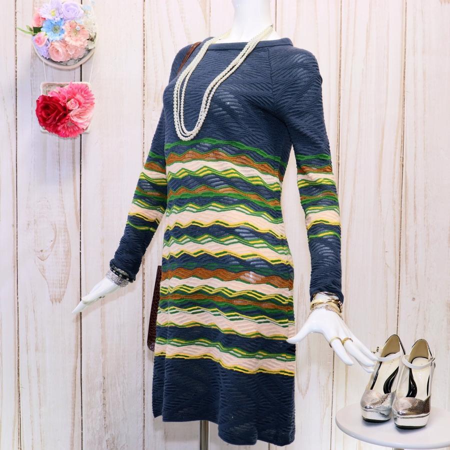 ミッソーニ 長袖ニットワンピース L ボーダー柄 マルチカラー ラグランスリーブ