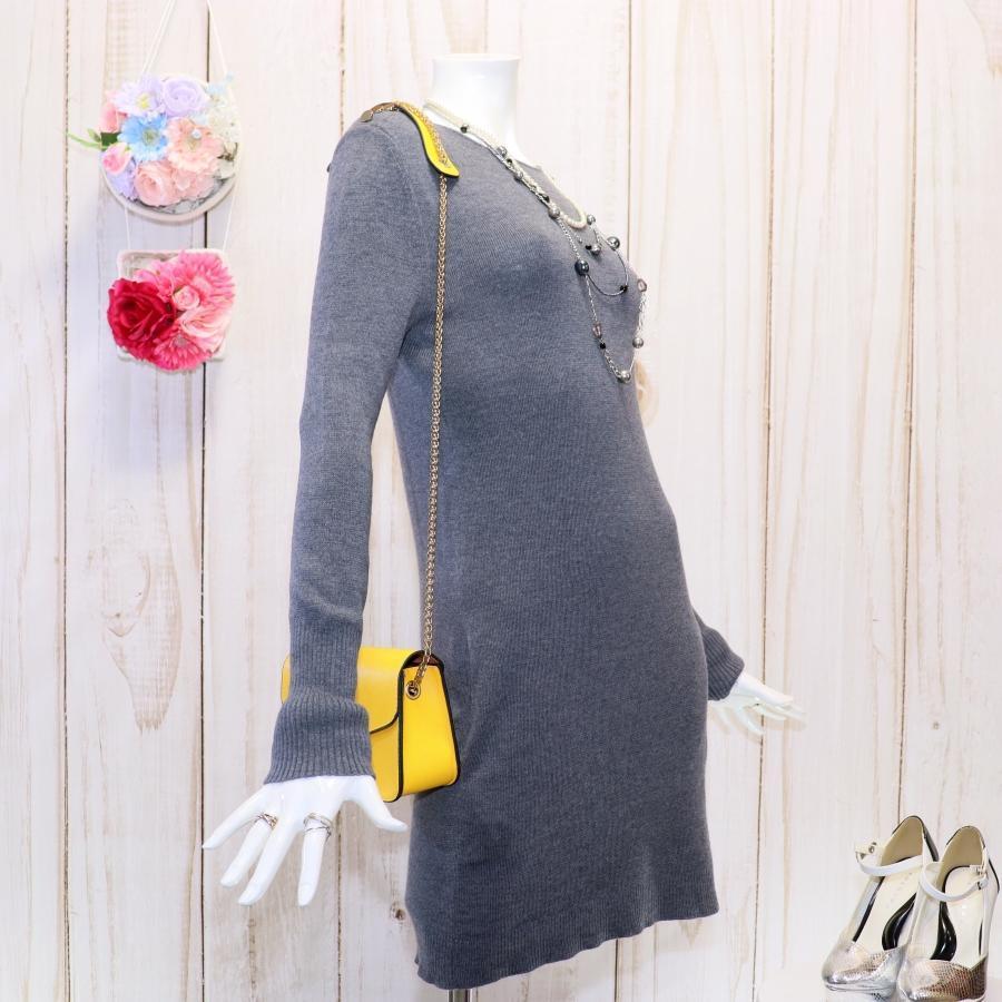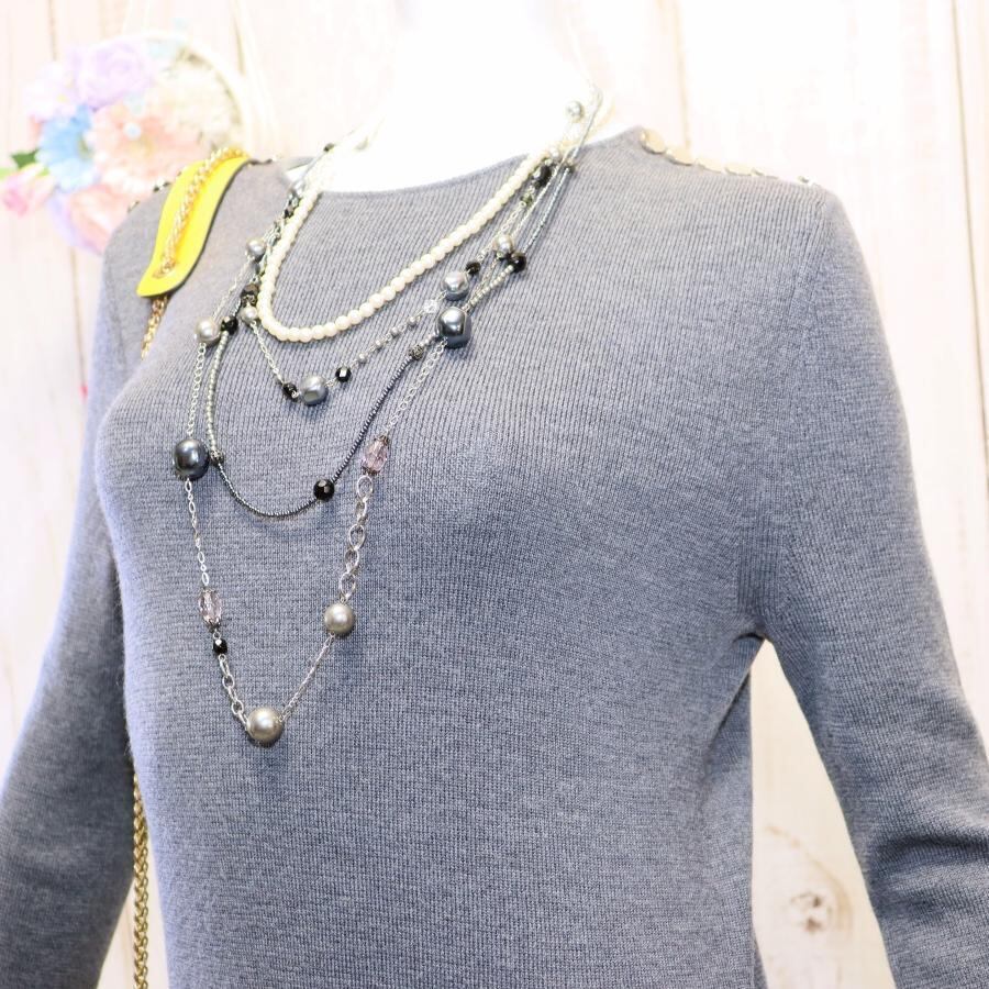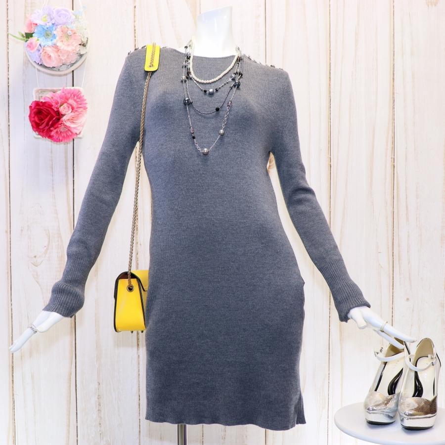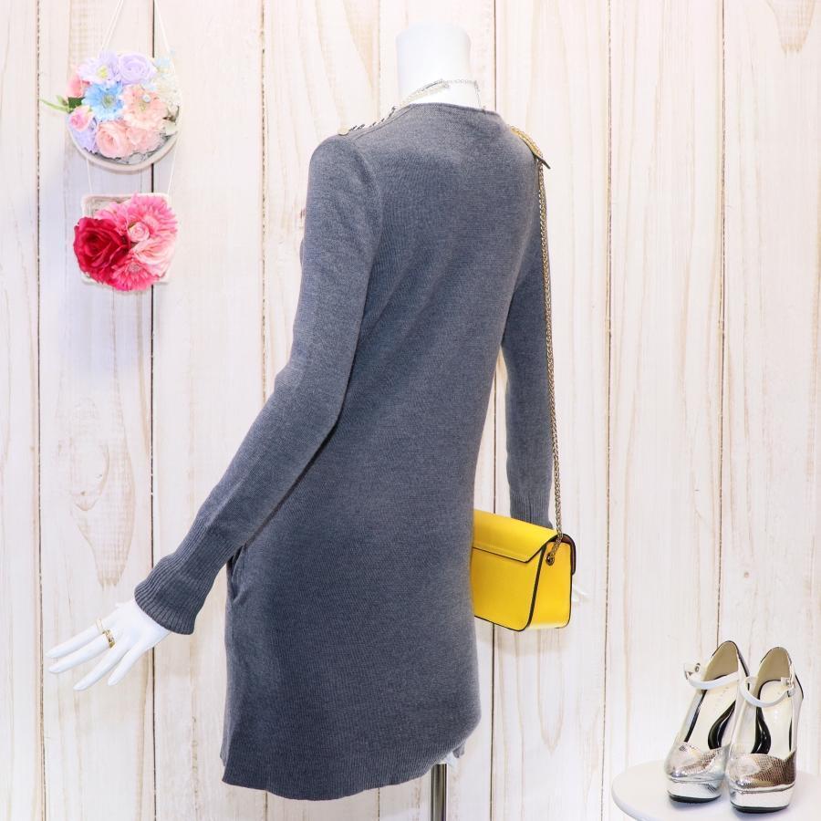Drawer ニットワンピース M ライトグレー 長袖 肩メタルボタン