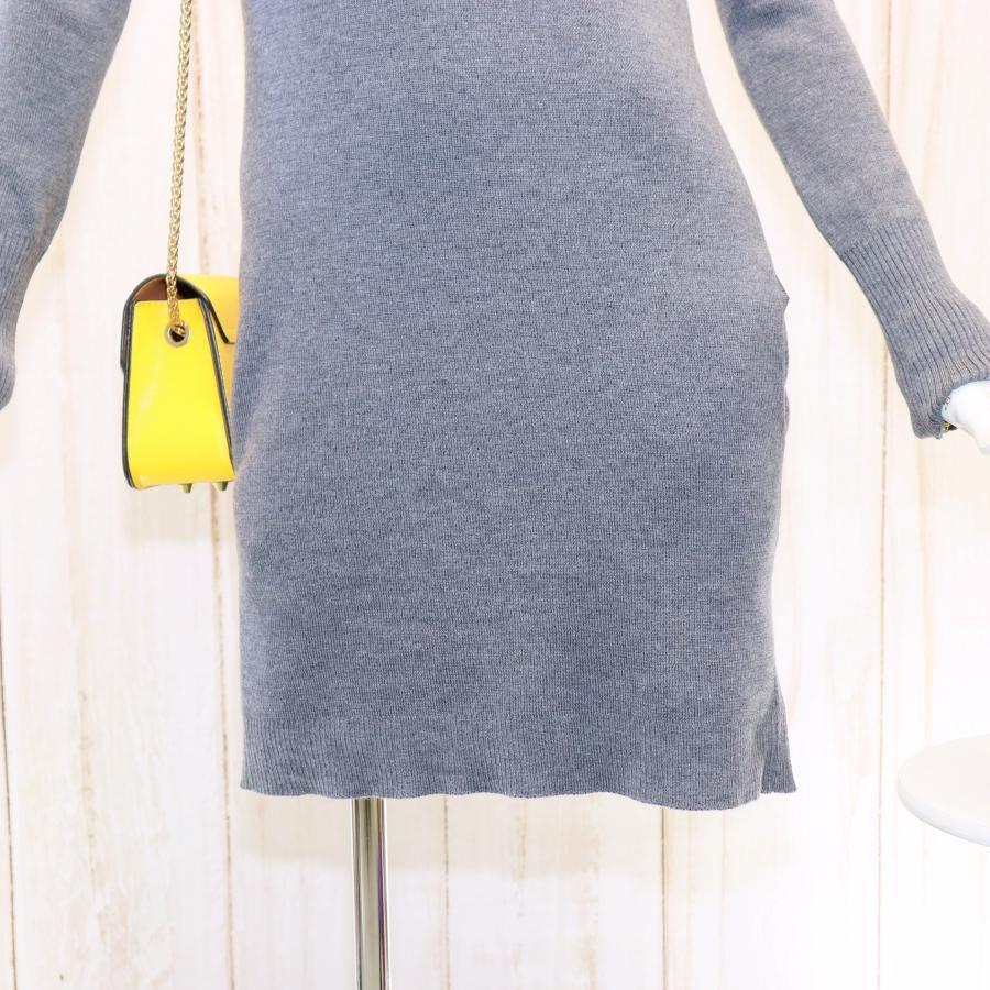 特徴:派手ワンピース、清楚系ワンピース、ニットワンピ、肩メタルボタン、ポケット有