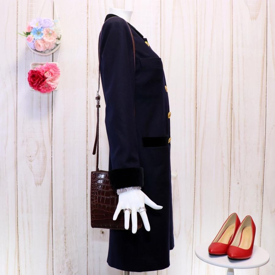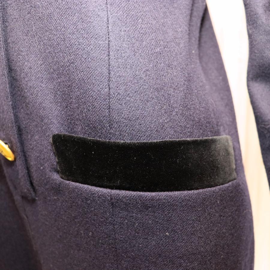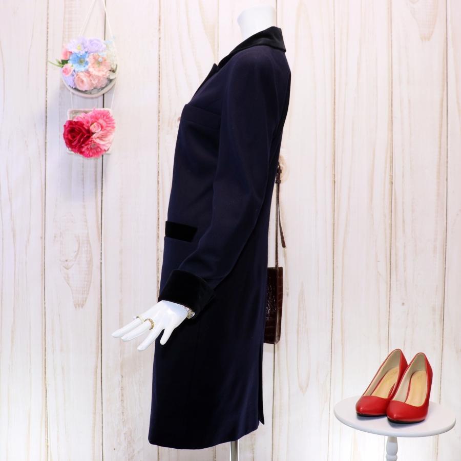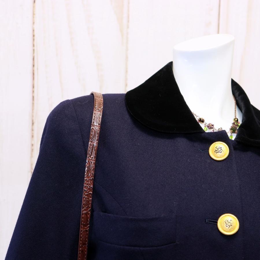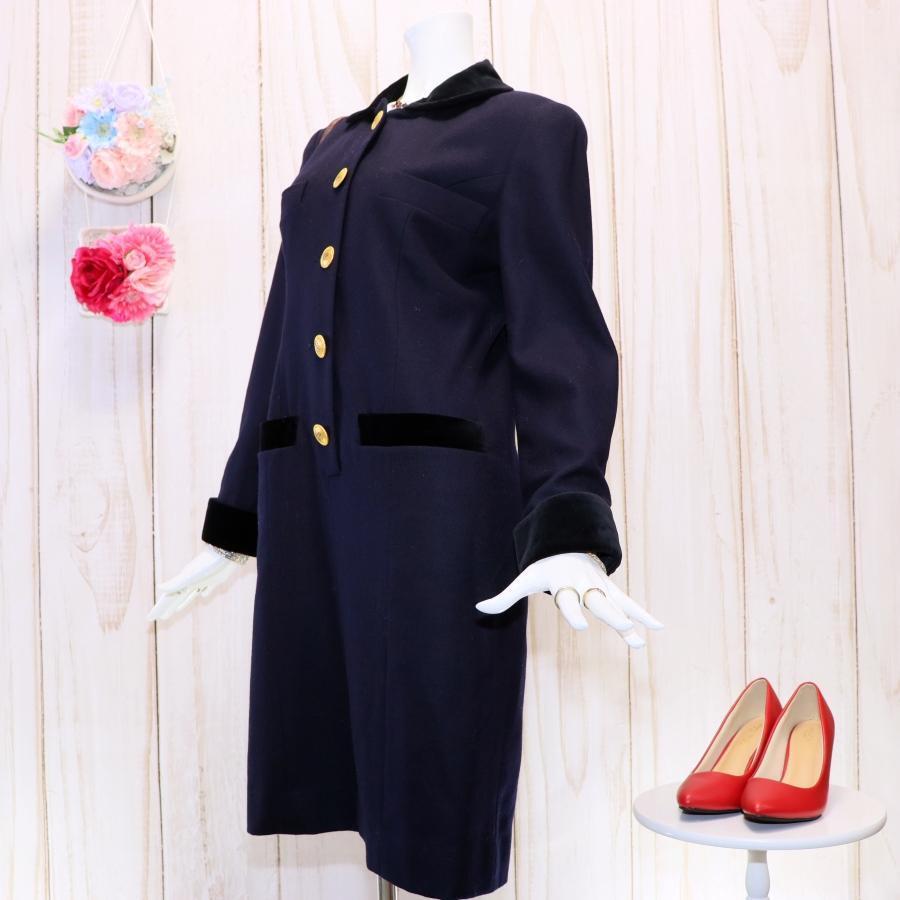 Rene ルネ ウールワンピース M ダークネイビー 丸襟 バイカラー 金ボタン