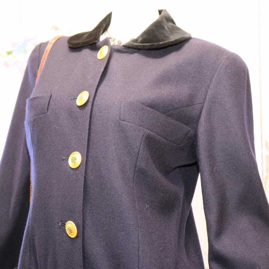 紺色のウール地に金ボタンが使われている、オーセンティックな雰囲気が可愛いワンピースです。