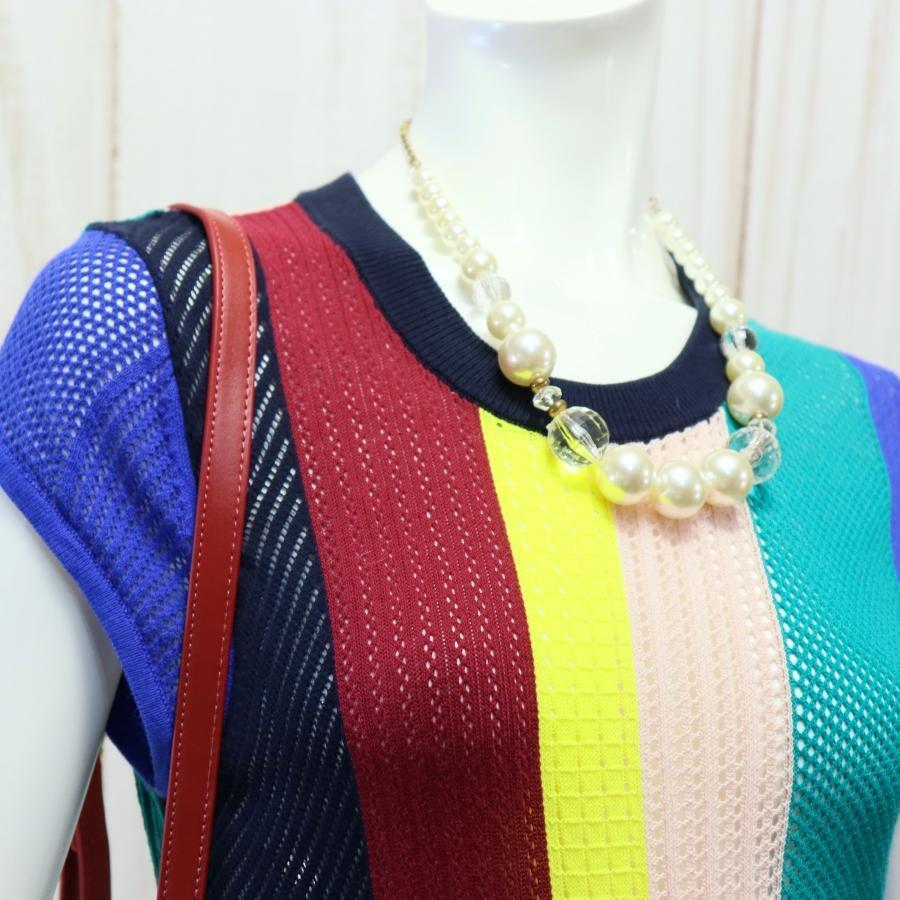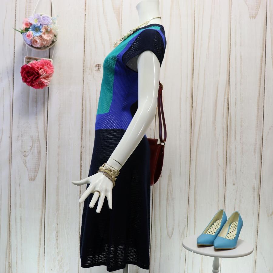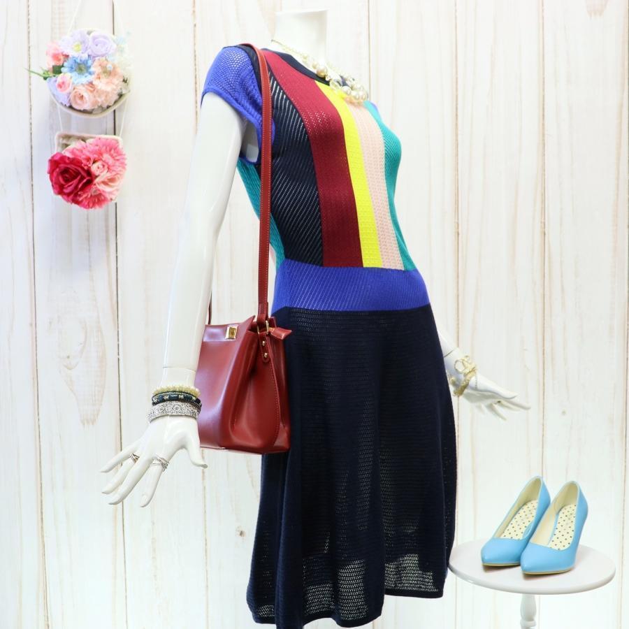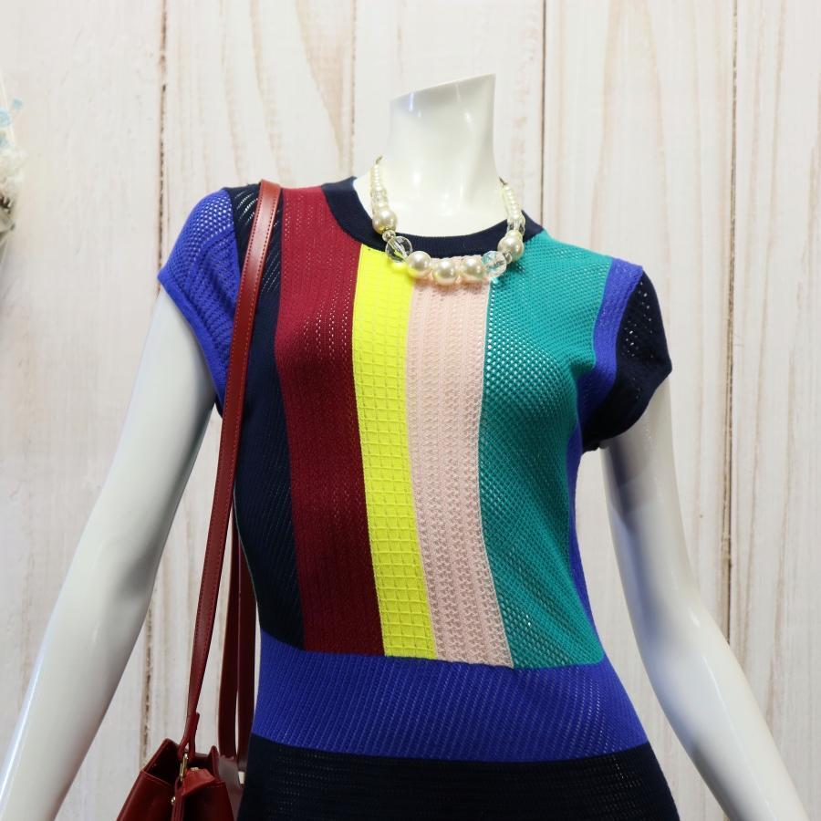 ポールスミス ニットワンピース M マルチカラー キャップスリーブ ストライプ柄