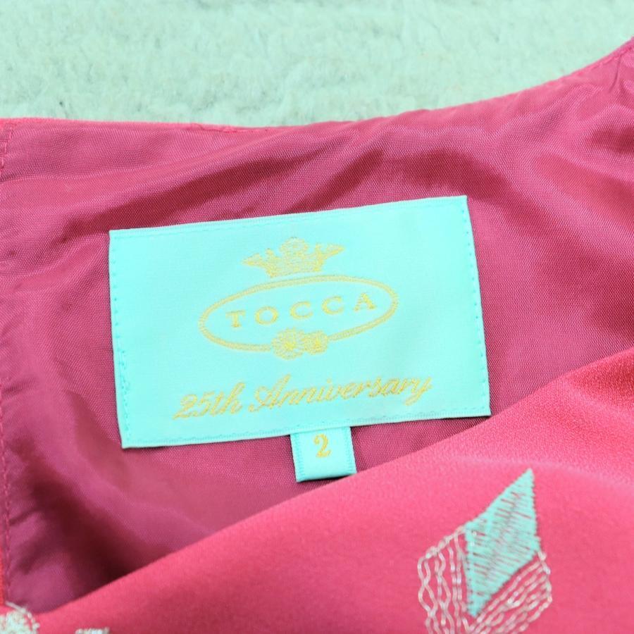 TOCCA ドレープ総柄ドレス M ローズピンク フレア ベルスリーブ 半袖