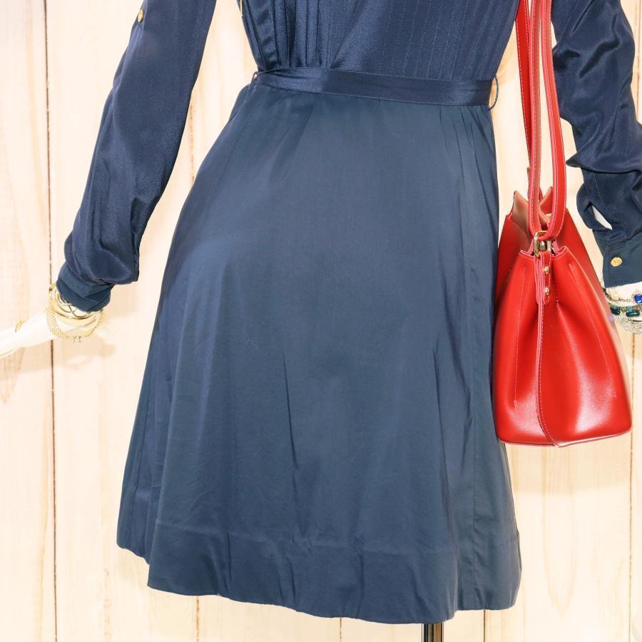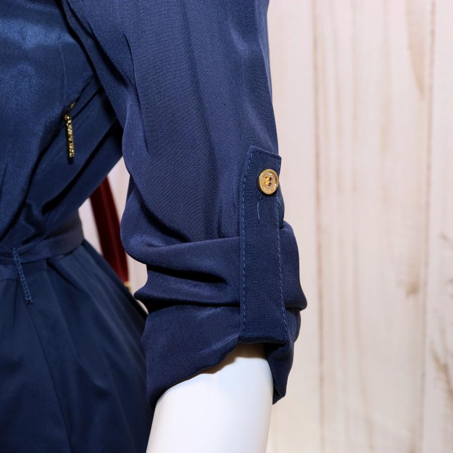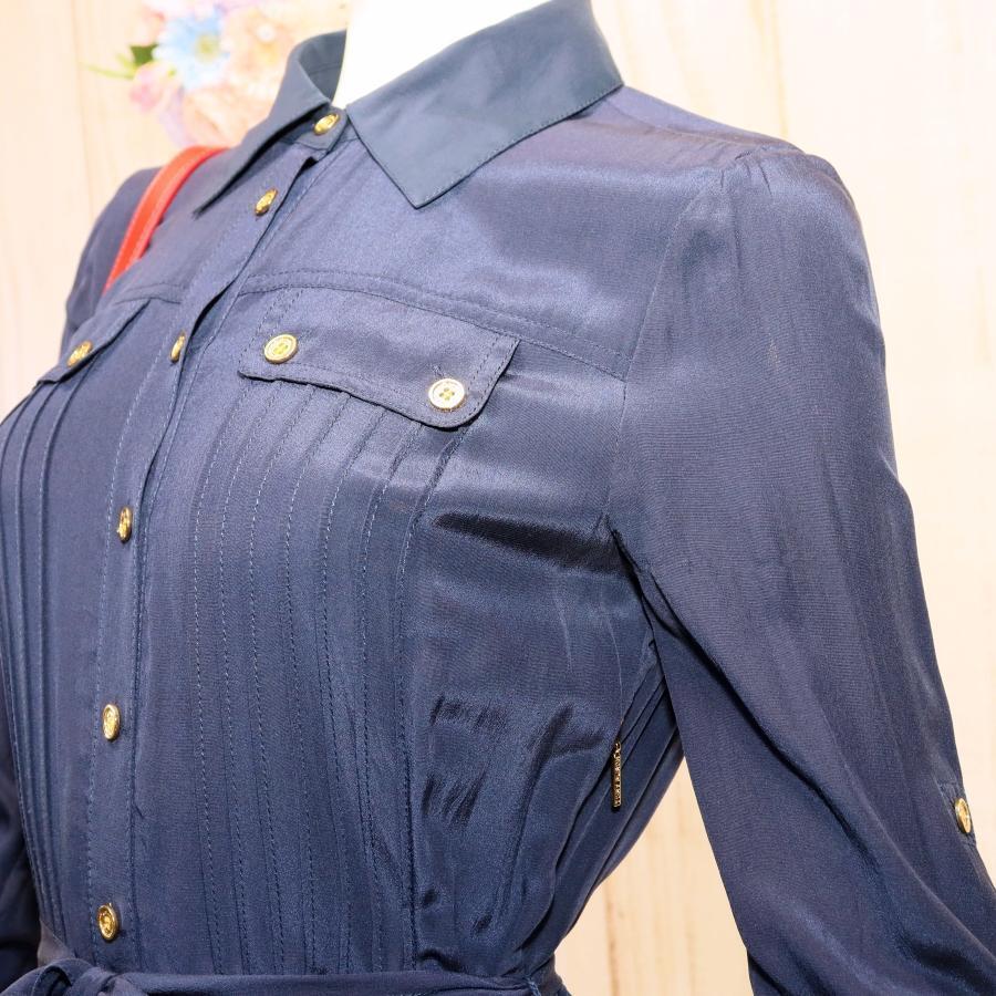 トリーバーチ シャツワンピース S ネイビー 金ボタン 2Way シルク